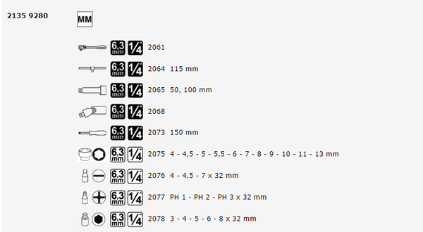 1/4'' Bộ tuýp lục giác 28 chi tiết 4 - 13 mm MATADOR 2135 9280