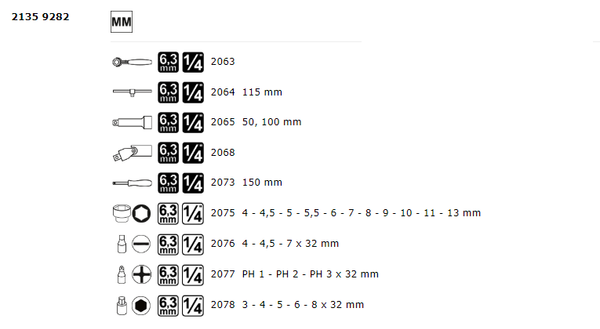 1/4'' Bộ tuýp lục giác hệ mét 28 chi tiết Matador 2135 9282