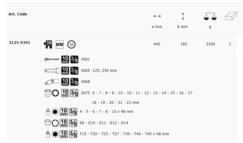 3/8'' Bộ tuýp bông 39 chi tiết Matador 3125 9391