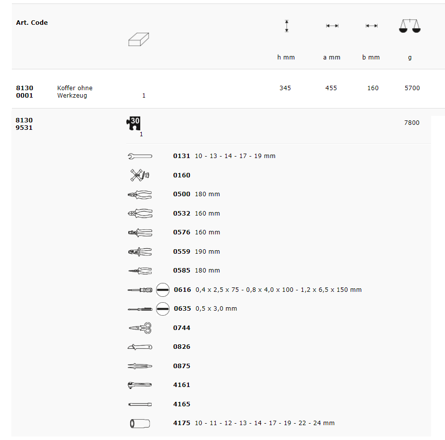 – In solid tool case made of strong and resistant ABS material with removable tool panels in lid and bottom