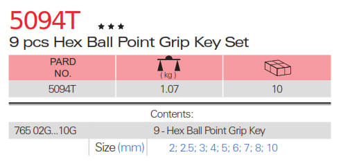 Bộ lục giác bi 9 chi tiết 2-10 mm Pard 5094T