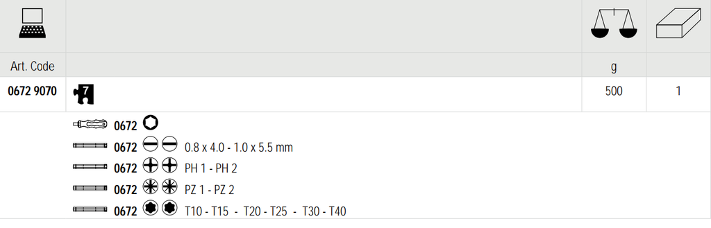 – 7 pcs. set containing srewdriver for reversible blades with freewheel ratchet and 6 reversible blades