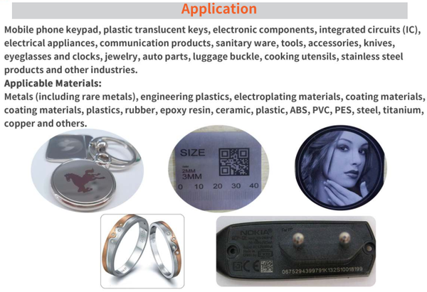Khắc trên kim loại: Khắc lên các sản phẩm kim loại như dụng cụ, phụ tùng, trang sức, đồng hồ, các thiết bị điện tử, linh kiện, v.v.