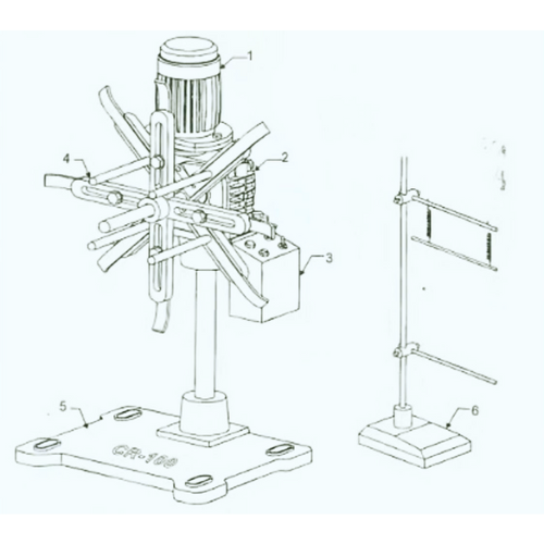 Động cơ truyền động làm quay khung đỡ thông qua hộp giảm tốc. Khi máy dập hoạt động, dải vật liệu giữa cuộn và máy dập được kéo căng, cần gạt cảm ứng được nâng lên kết nối nguồn điện, động cơ bắt đầu quay và khung đỡ đưa vật liệu ra.