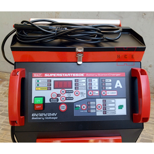 SEALEY SUPERSTART550E - MÁY KHỞI ĐỘNG KHẨN CẤP VÀ SẠC PIN ĐA DÒNG ĐIỆN 6/12/24V 550A là thiết bị đa năng kết hợp sạc ắc quy và khởi động xe (starter/booster), hỗ trợ các mức điện áp 6V, 12V và 24V.